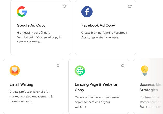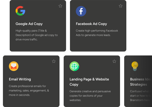 O sistema foi criado para focar e criar conteúdo semelhante ao humano, ajudando você a gerar conteúdo e ideias envolventes para blogs, aplicativos, mídias sociais, vídeos, arte digital, SEO e muito mais.